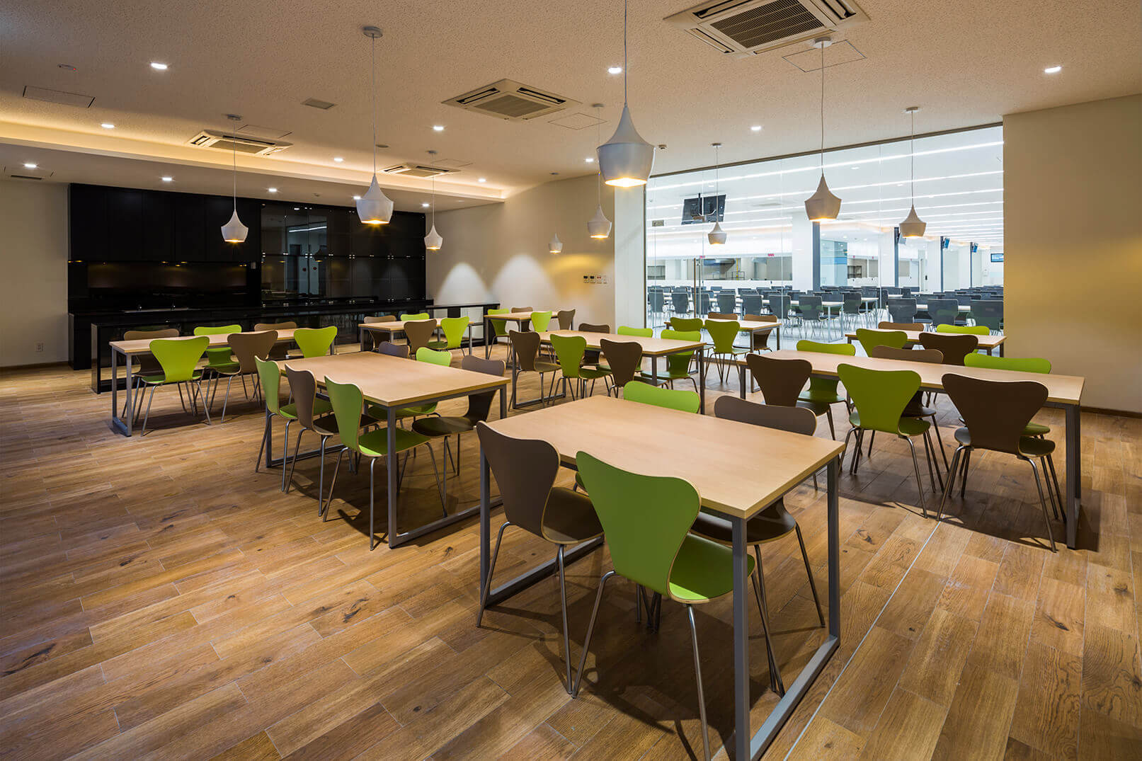 Chúng tôi đã thiết kế một không gian giúp nhân viên có thể dùng bữa trong sự thoải mái và tiện nghi, phù hợp với chủ trương của Chủ tịch Công ty rằng “để tạo ra những sản phẩm chất lượng, trước hết toàn thể nhân viên cần phải hiểu thế nào là sản phẩm tốt”.